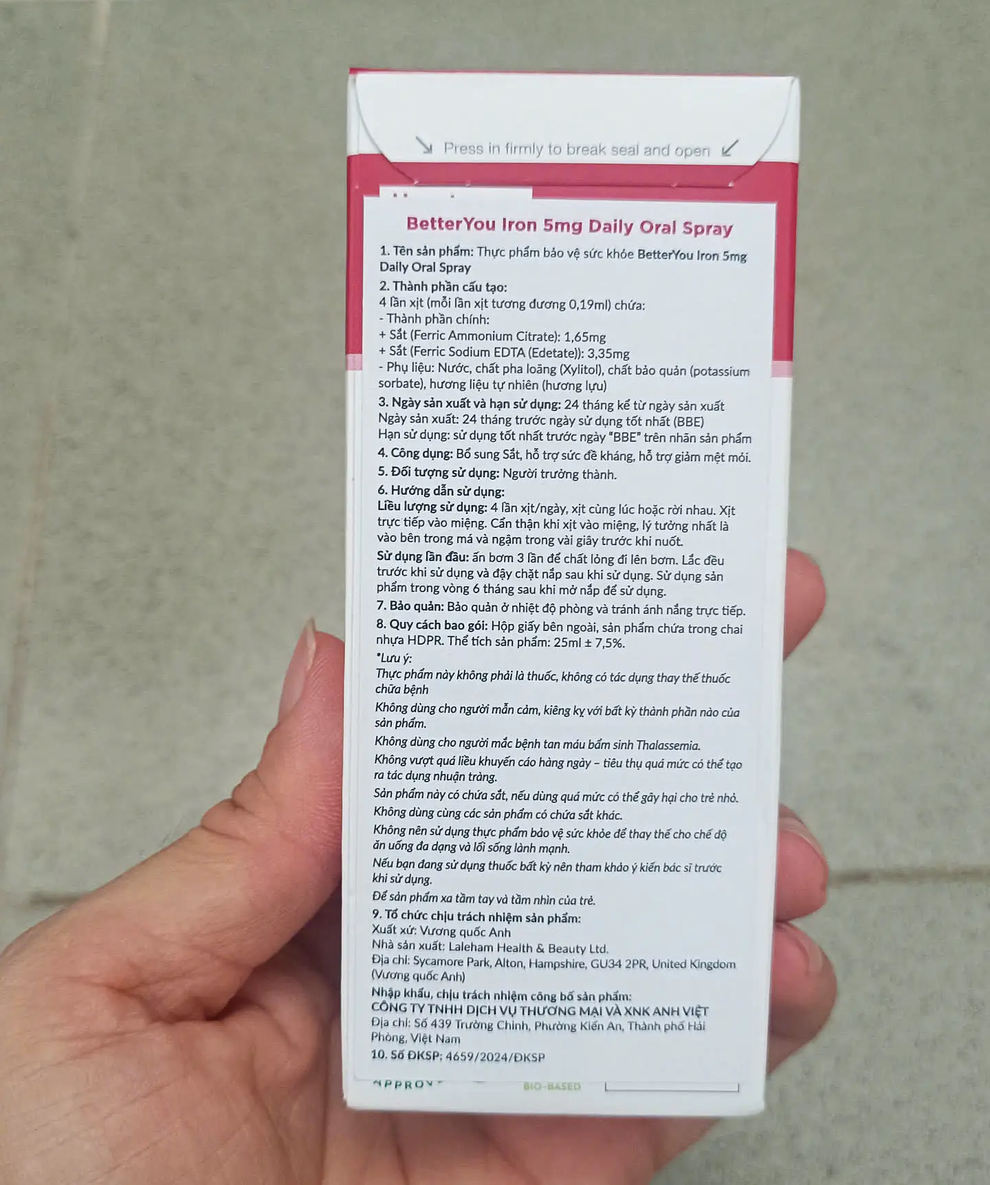 Sắt xịt Better You Iron Daily Oral Spray của Anh cho bé từ 1 tuổi