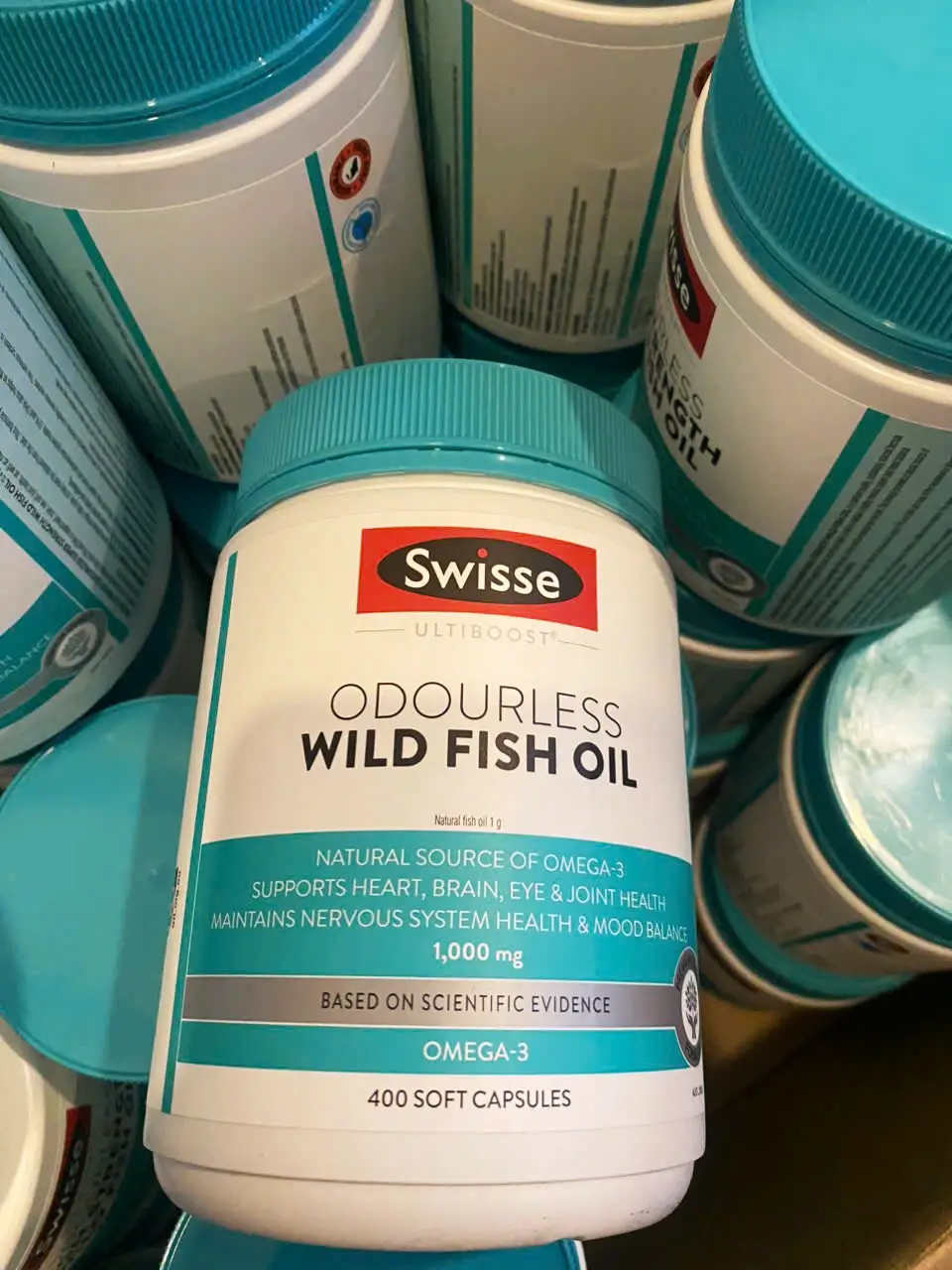 - Viên dầu cá Swisse Ultiboost Odourless Wild Fish Oil 1000mg 400 viên là công thức chất lượng cao được chiết xuất từ nguồn cá hoang dã bền vững, giàu axit béo Omega-3 tự nhiên (EPA & DHA) – hai dưỡng chất thiết yếu giúp bảo vệ toàn diện sức khỏe tim mạch, não bộ, mắt, khớp và cân bằng tinh thần. Sản phẩm được thiết kế KHÔNG MÙI TANH CÁ, dễ uống, phù hợp cho mọi lứa tuổi từ trẻ nhỏ đến người cao tuổi. Với công nghệ sản xuất hiện đại và tiêu chuẩn khắt khe từ Úc, Swisse mang đến giải pháp bổ sung Omega-3 hoàn hảo dựa trên bằng chứng khoa học rõ ràng. Chỉ cần 1-2 viên mỗi ngày, bạn sẽ cảm nhận được sự cải thiện rõ rệt về sức khỏe tổng thể và chất lượng cuộc sống.