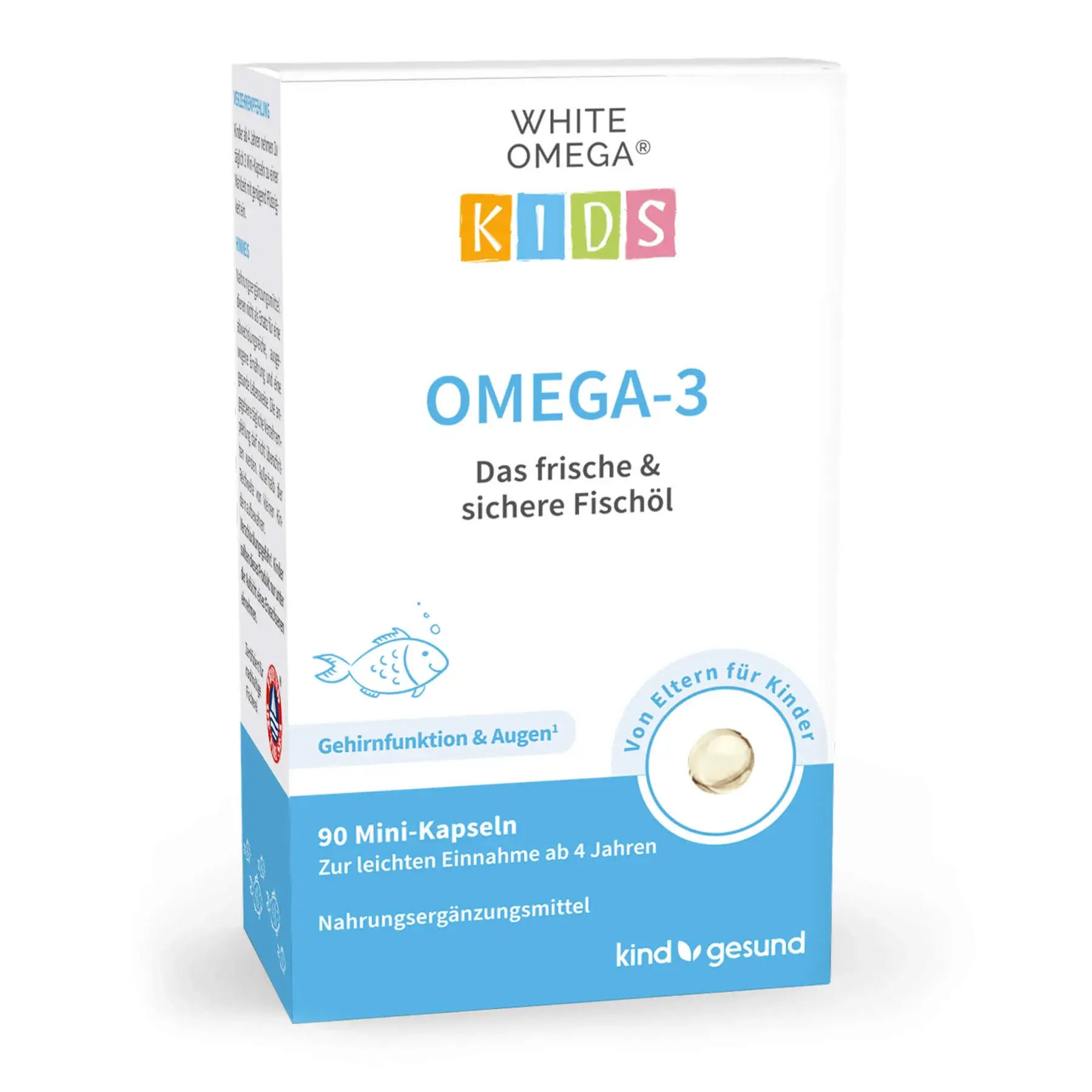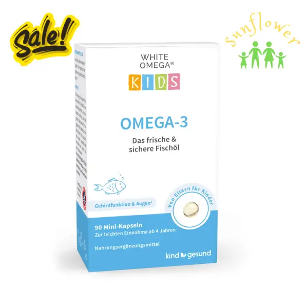 - Sản phẩm Dầu cá White Omega Kids Omega-3 Kindgesund được đánh giá cao về chất lượng và độ an toàn, là lựa chọn lý tưởng giúp trẻ phát triển khỏe mạnh. Dầu cá Omega-3 tươi cho trẻ em có tỷ lệ cân bằng tối ưu của axit béo omega-3 DHA & EPA được thiết kế hoàn hảo theo nhu cầu của trẻ em từ 4 tuổi trở lên.