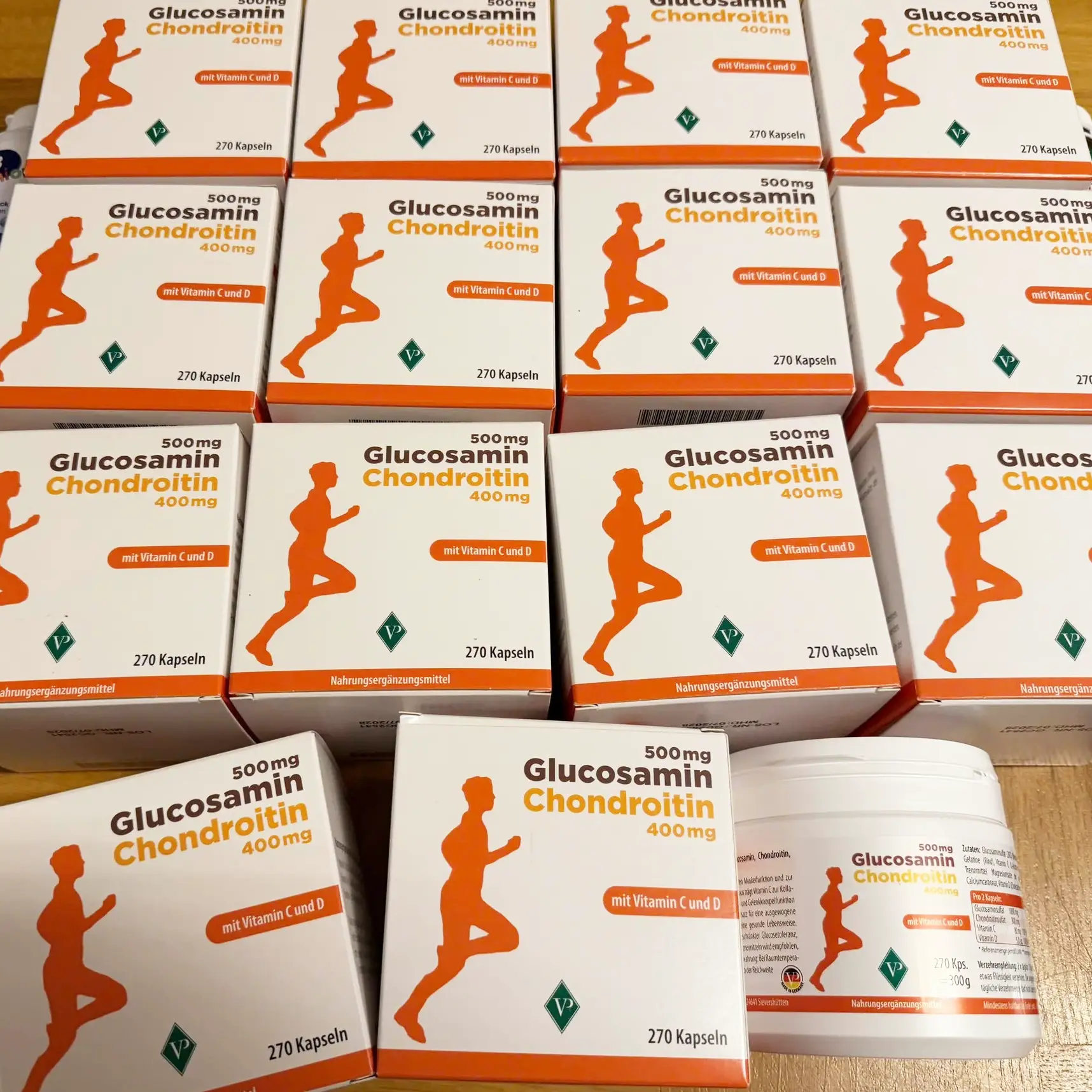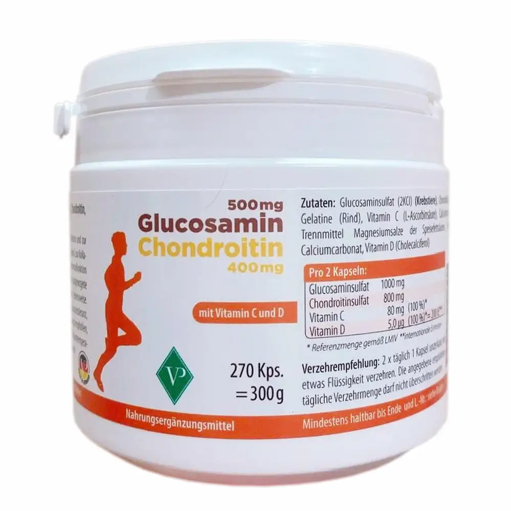 - Viên uống Glucosamin Chondroitin 500mg/400mg với công thức vàng kết hợp Vitamin C và D là giải pháp toàn diện cho sức khỏe xương khớp của bạn. Sản phẩm cung cấp hàm lượng Glucosamin Sulfat cao cấp chiết xuất từ động vật giáp xác tự nhiên, kết hợp cùng Chondroitin Sulfat giúp tái tạo và bảo vệ sụn khớp hiệu quả. Được bổ sung thêm Vitamin C với vai trò chống oxi hóa mạnh mẽ và Vitamin D hỗ trợ hấp thu canxi tối ưu, sản phẩm mang lại giải pháp 4 trong 1 chăm sóc toàn diện cho hệ xương khớp. Với 270 viên nang trong mỗi hộp, sản phẩm đảm bảo đủ dùng cho 3-4 tháng điều trị liên tục, giúp bạn lấy lại sự linh hoạt và thoải mái trong mọi chuyển động.