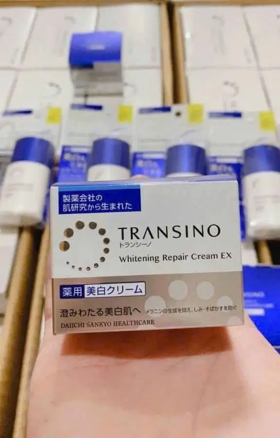 - Kem dưỡng Transino Whitening Repair Cream EX chính là “cứu cánh” đêm khuya giúp tái tạo làn da hoàn hảo từ sâu bên trong. Với công thức độc quyền từ tập đoàn dược phẩm Daiichi Sankyo, sản phẩm tập trung ức chế sự hình thành melanin ngay trong lúc bạn đang ngủ. Lớp kem mỏng nhẹ thẩm thấu nhanh, không chỉ xóa mờ các vết thâm nám mà còn tăng cường độ ẩm, mang lại vẻ trắng sáng rạng rỡ. Đây là bước đột phá giúp bạn duy trì nét thanh xuân và phục hồi những tổn thương do sắc tố gây ra một cách an toàn nhất.