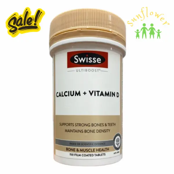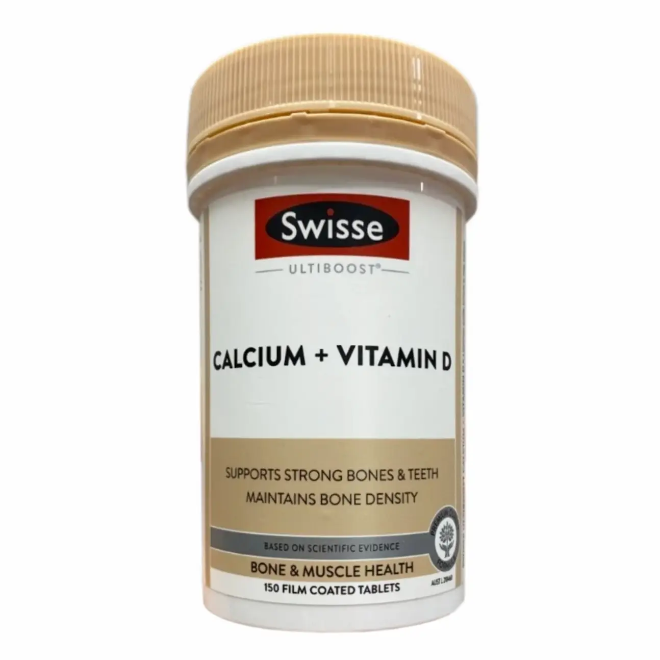 - Viên uống Swisse Calcium + Vitamin D3 150 viên là thực phẩm bổ sung giúp tăng cường sức khỏe xương và răng. Sản phẩm cung cấp canxi hữu cơ dễ hấp thu, kết hợp cùng vitamin D3 hỗ trợ tối đa quá trình hấp thụ canxi. Nhờ đó, viên uống giúp phòng ngừa loãng xương, giảm đau nhức và duy trì khả năng vận động. Đây là lựa chọn lý tưởng cho người lớn tuổi, phụ nữ sau sinh và những ai có nhu cầu bổ sung canxi hàng ngày.