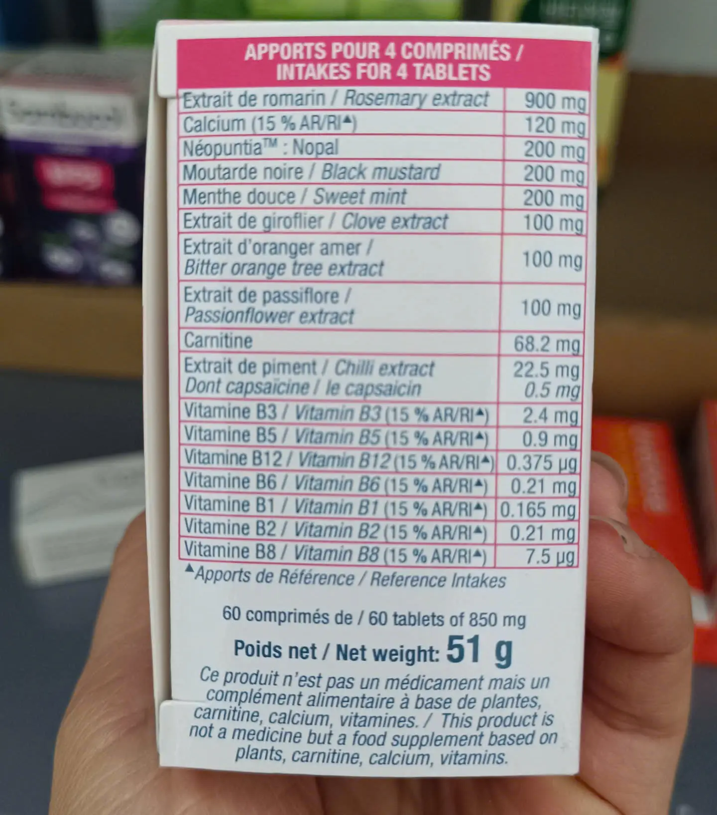 Thành phần chính của thuốc giảm cân MinciNov hộp 60 viên của Pháp