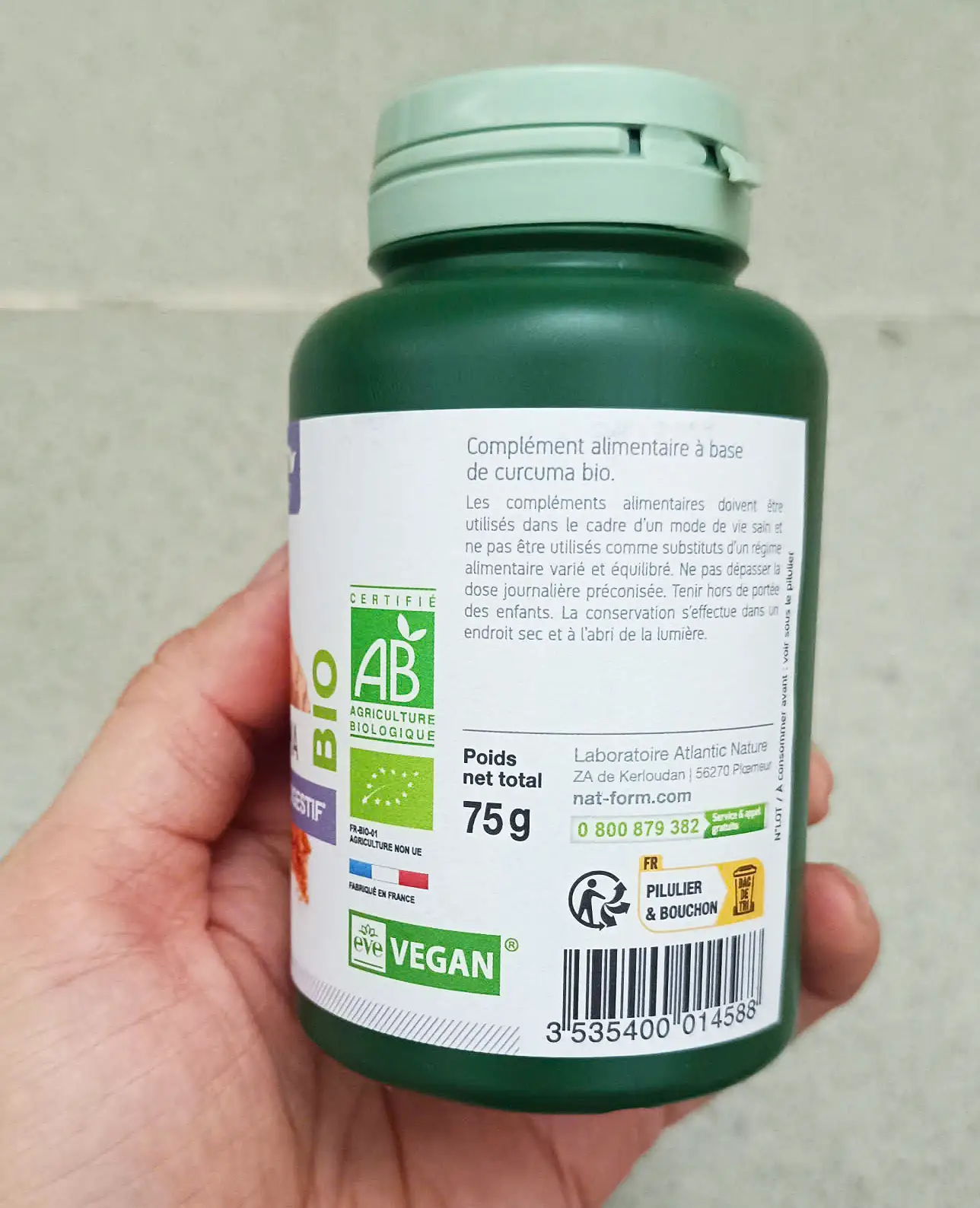 Thành phần viên uống tinh bột nghệ hữu cơ Nat & Form Curcuma Bio