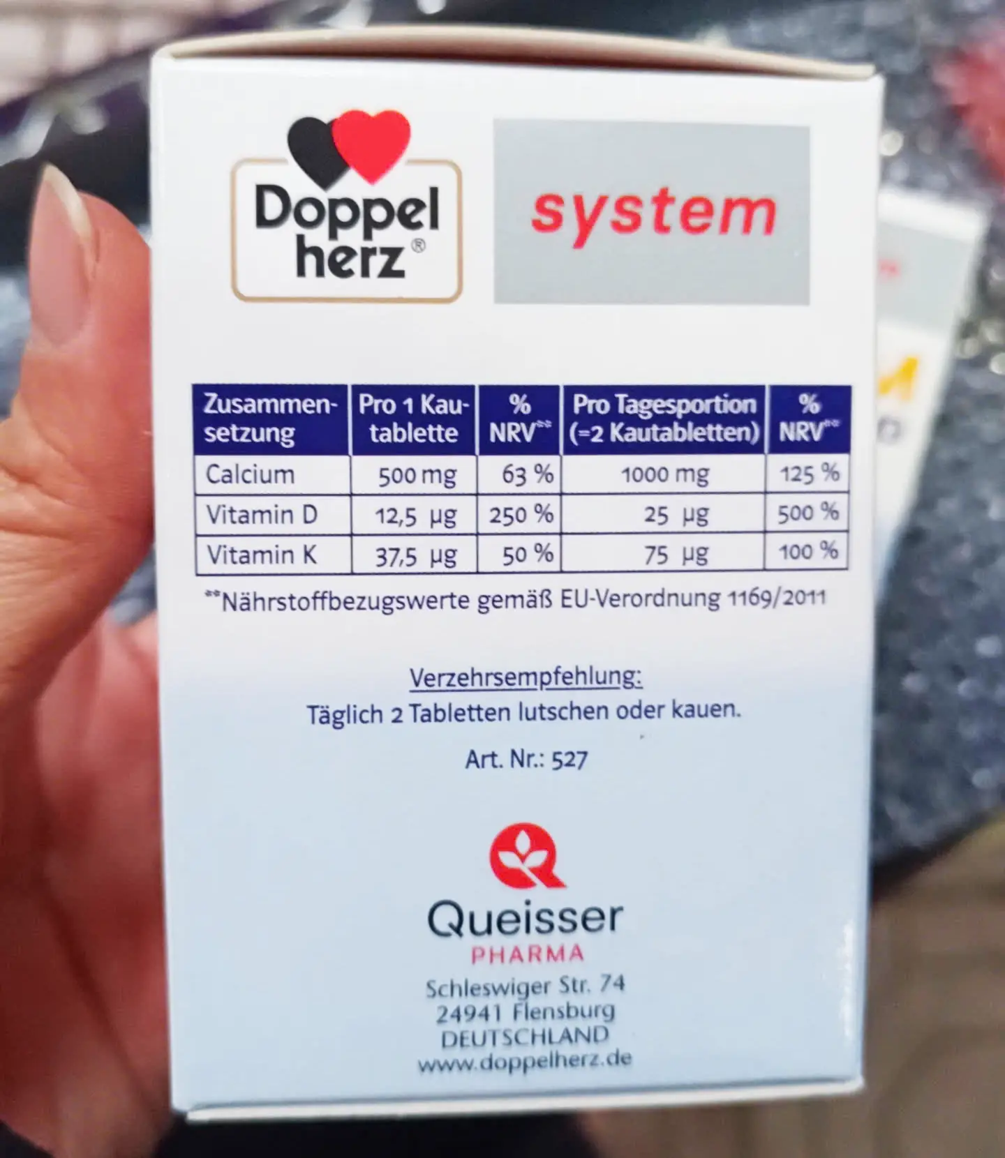 Viên nhai Doppelherz Calcium 1000 + D3 + K2 60 viên của Đức