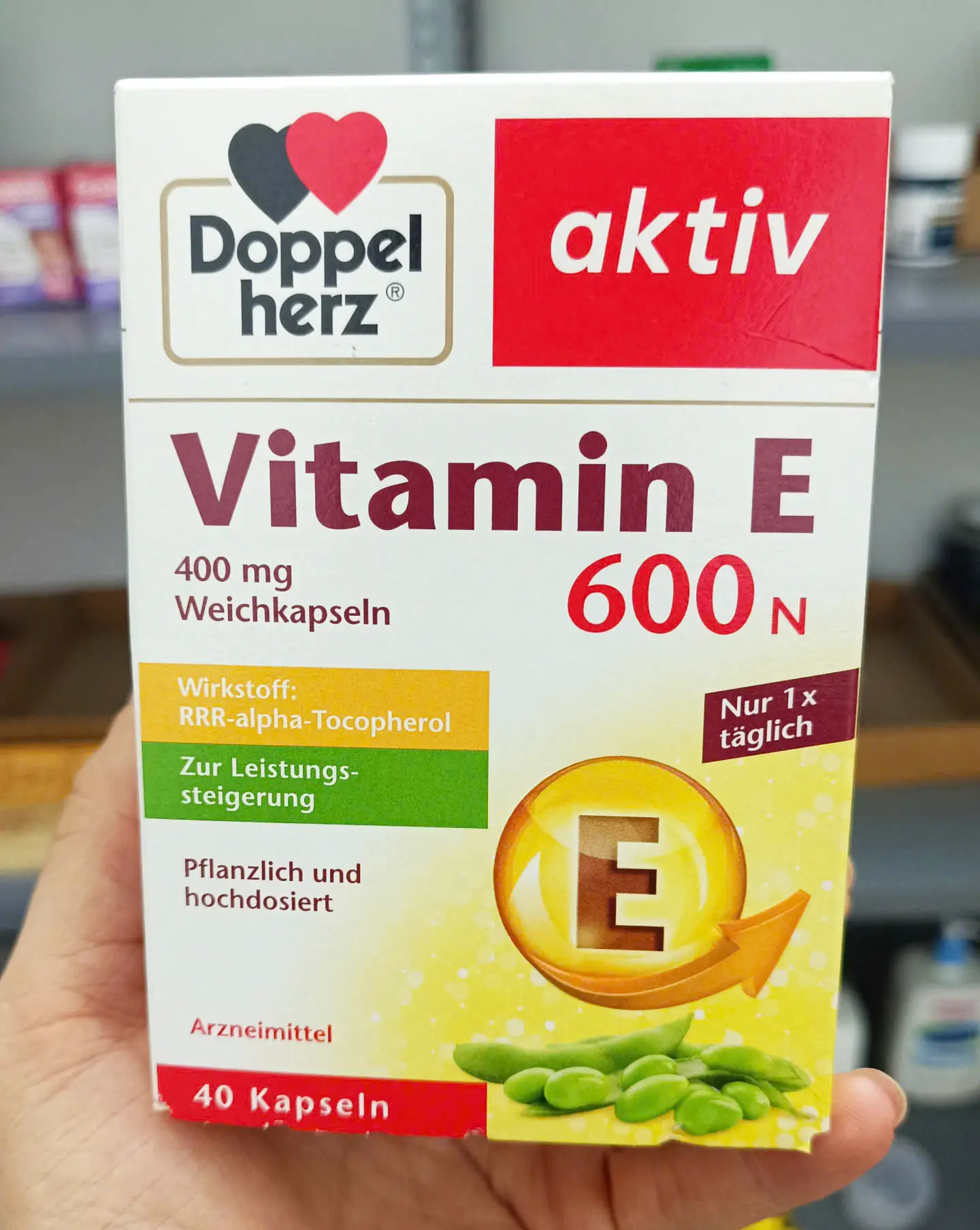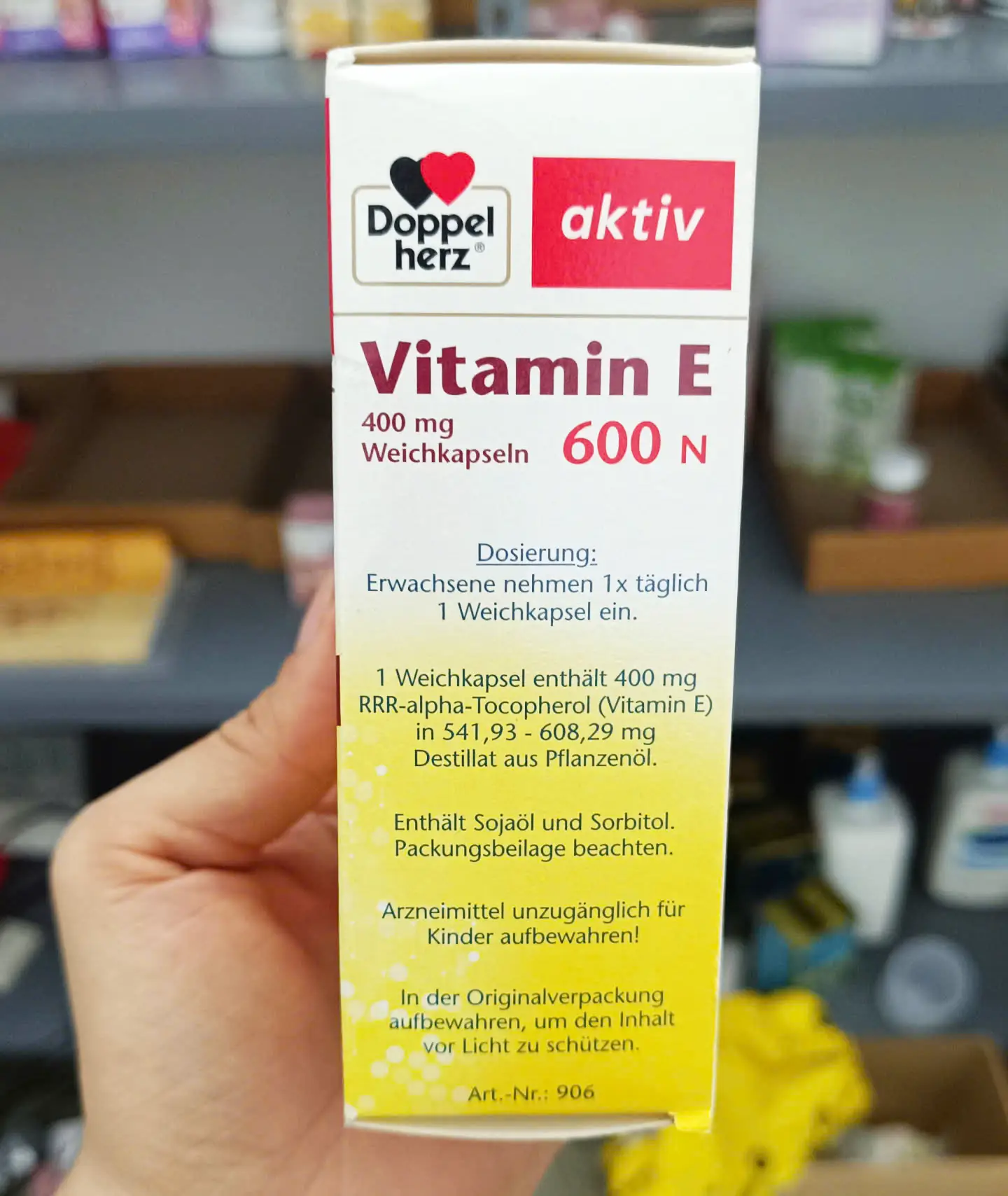 - Viên uống Vitamin E 600N Doppelherz 40 viên là giải pháp bổ sung vitamin E hàm lượng cao giúp nuôi dưỡng làn da khỏe đẹp từ bên trong. Sản phẩm đến từ Đức, nổi bật với công nghệ sản xuất hiện đại và tiêu chuẩn nghiêm ngặt. Công thức tối ưu giúp chống oxy hóa mạnh mẽ, hỗ trợ bảo vệ tế bào khỏi tác hại của gốc tự do. Đây là lựa chọn lý tưởng cho người muốn chăm sóc da và sức khỏe toàn diện.