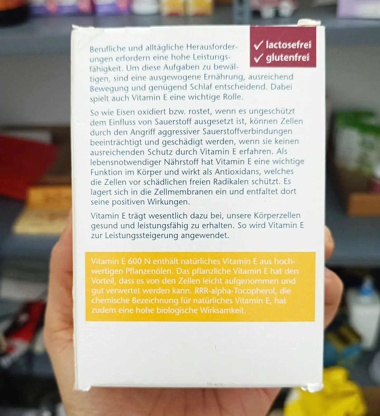 Thành phần Vitamin E 600 Doppelherz 40 viên
