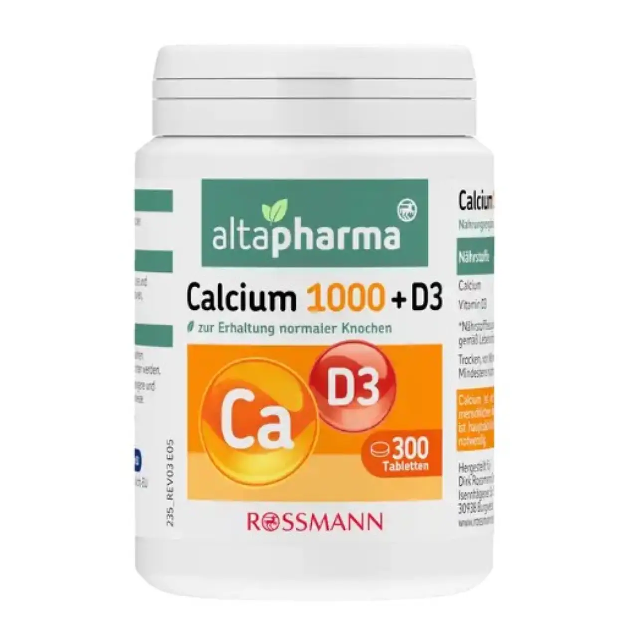 - Viên uống Altapharma Calcium + D3 300 viên là giải pháp hiệu quả giúp bổ sung canxi và vitamin D3 – hai dưỡng chất thiết yếu cho hệ xương răng khỏe mạnh. Sản phẩm đến từ thương hiệu uy tín Altapharma (Đức), được phân phối độc quyền tại hệ thống ROSSMANN. Với hàm lượng canxi cao kết hợp cùng vitamin D3 hỗ trợ hấp thu tối ưu, viên uống giúp duy trì mật độ xương, tăng cường sức khỏe toàn thân. Sản phẩm phù hợp cho cả người lớn tuổi, phụ nữ mang thai và trẻ em đang phát triển.