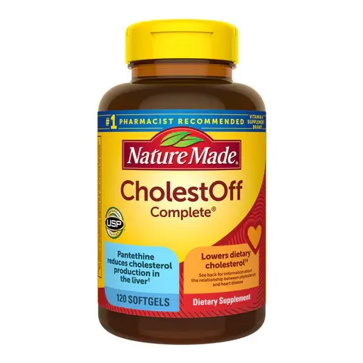 - Viên uống Nature Made CholestOff Complete® là sản phẩm thực phẩm bổ sung hàng đầu của Mỹ, được bào chế từ sự kết hợp độc đáo giữa Reducol® (phytosterol/plant sterols & stanols) và Pantesin® (pantethine) – hai hoạt chất đã được nghiên cứu lâm sàng về khả năng kiểm soát cholesterol. Sản phẩm tác động theo hai cơ chế song song: vừa ngăn chặn hấp thu cholesterol từ thức ăn vào máu, vừa ức chế sản sinh cholesterol xấu LDL tại gan. Được kiểm định bởi tổ chức USP (United States Pharmacopeia), đảm bảo độ thuần khiết và hàm lượng hoạt chất chính xác. Đây là lý do CholestOff Complete® được bình chọn là thương hiệu vitamin & thực phẩm bổ sung số 1 được các dược sĩ Mỹ khuyên dùng.