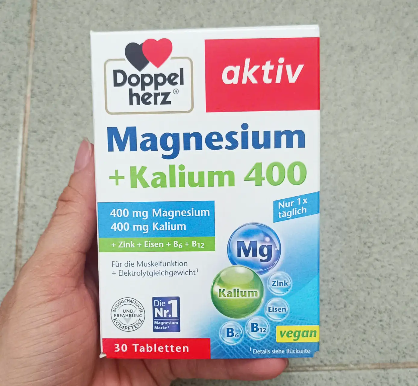 - Viên uống Doppelherz Magnesium 400 + Kalium từ Đức giúp bổ sung đầy đủ 400mg Magie và 400mg Kali mỗi ngày, hỗ trợ hiệu quả cho tim mạch, cơ bắp và thần kinh. Sản phẩm được sản xuất theo tiêu chuẩn châu Âu, đảm bảo chất lượng và an toàn cho người sử dụng. Chỉ với 1 viên mỗi ngày, bạn đã có thể chủ động chăm sóc sức khỏe từ bên trong.