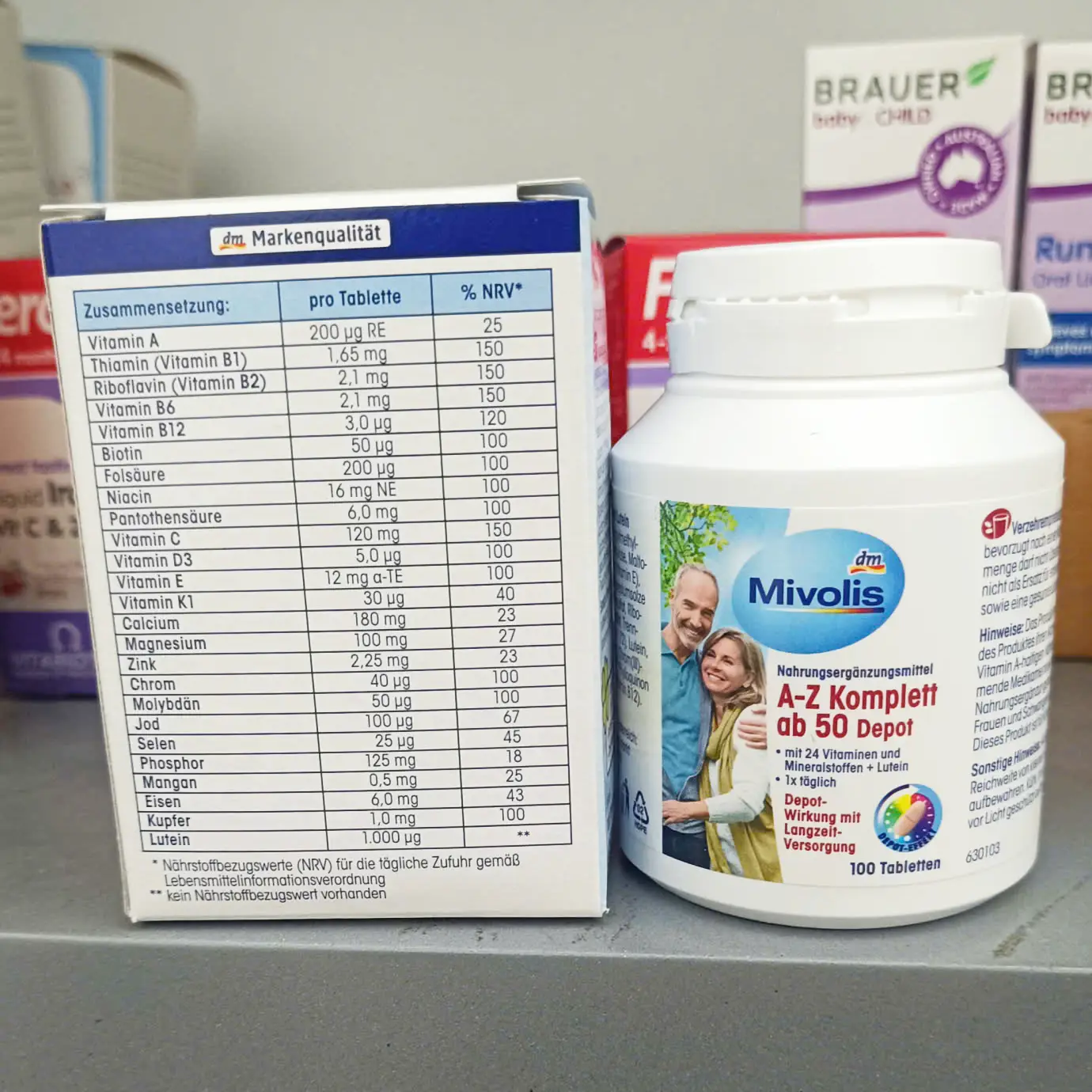 - Vitamin tổng hợp cho người trên 50 tuổi Mivolis A Z Depot – mã sản phẩm 4058172922053 hiện đang được bán tại Shop Sunflower. Bạn có thể dễ dàng mua bằng cách: